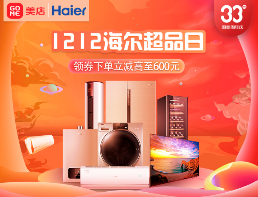 12月12日-15日,33周年生日之際,國美與海爾再度攜手,國美美店帶來1212海爾超級品牌日活動,涵蓋了海爾冰箱、洗衣機、空調、電視、廚房衛(wèi)浴等多個品類豐富產品,多重優(yōu)惠福利、六大承諾保障、延保清洗服務,其中多個年度爆款值得期待。