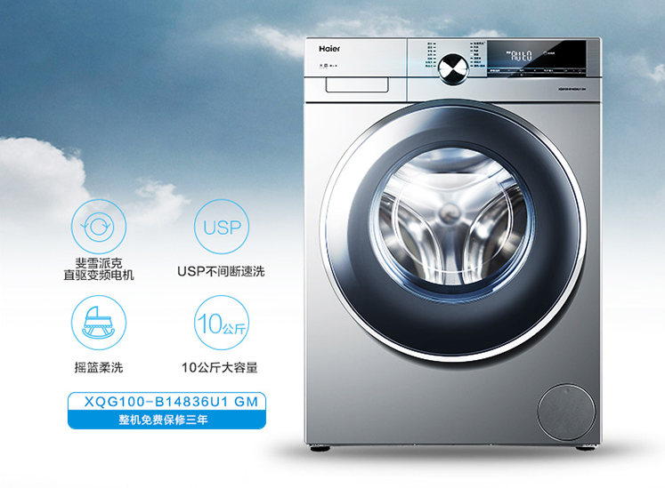 這款洗衣機擁有10公斤大容量,解決了很多家庭大件的清洗問題。當下最新技術的直驅變頻電機,無碳刷、無皮帶,性能強勁、穩(wěn)定。運行超靜音,15分鐘USP不間斷速洗,洗衣更潔凈更快速。獨有搖籃柔洗,珍貴面料呵護洗。遠程智控操作,不在家也能洗衣。