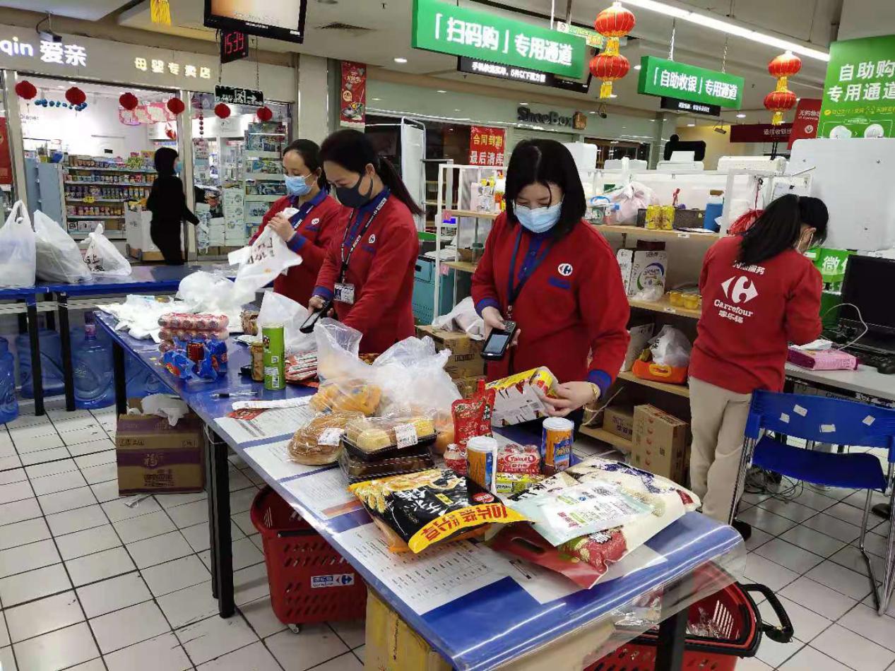 市場上餐飲門店關(guān)停后,保障員工用餐成為蘇寧家樂福的重中之重。因此,蘇寧家樂福為所有的在崗員工提供了工作餐,保證員工用上健康的熱飯。此外,家樂福還為所有在崗員工提供工作餐,還額外準備了速食面、八寶粥、面包、牛奶、功能飲料等方便食品供員工工作時補充能量。