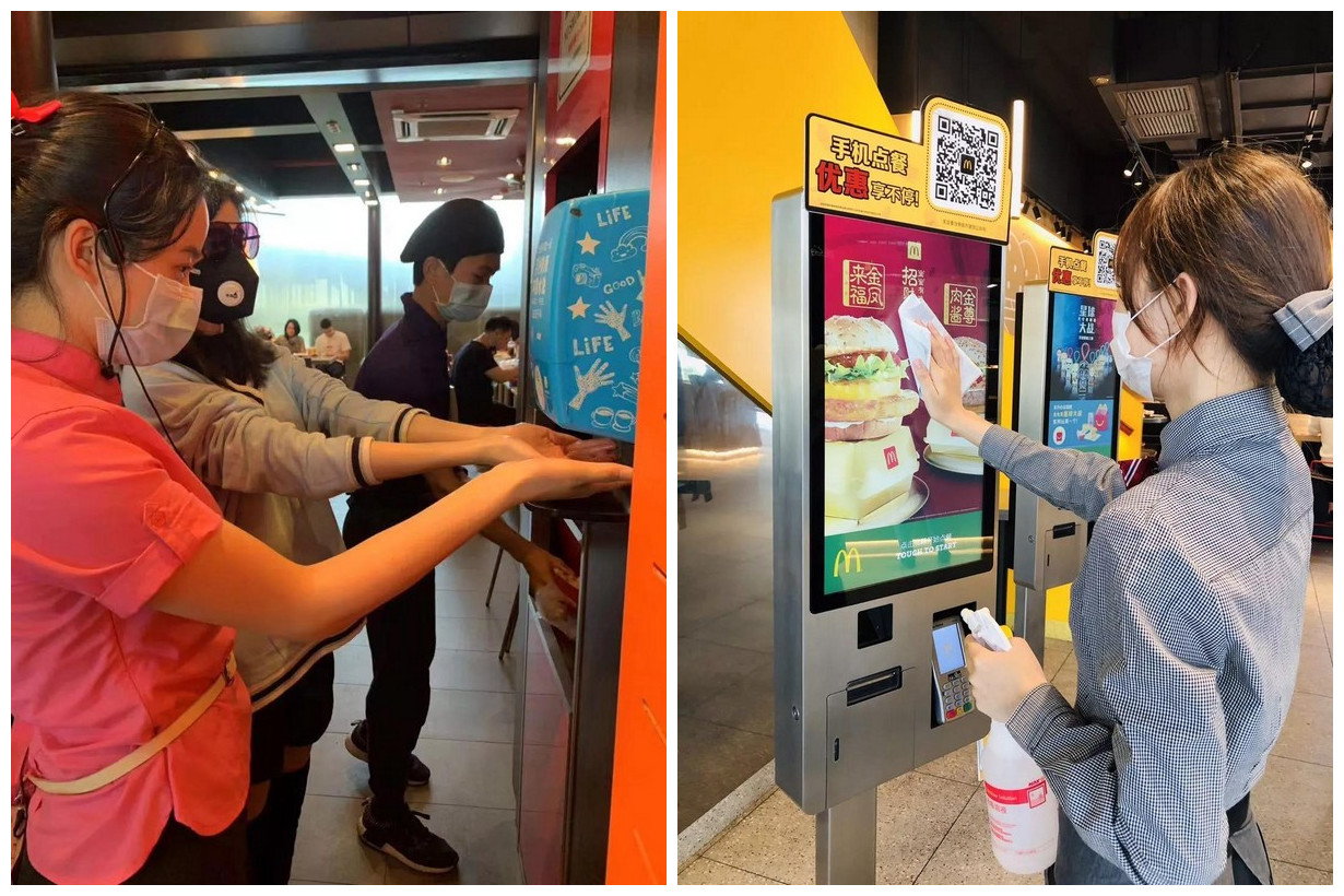 據(jù)了解,目前全國(guó)所有的麥當(dāng)勞餐廳啟動(dòng)上班員工測(cè)溫流程,并提高員工洗手消毒頻次,全國(guó)餐廳全員佩戴口罩。在餐廳為顧客提供免洗洗手液,對(duì)所有餐廳的通風(fēng)系統(tǒng)和顧客常接觸的設(shè)施,強(qiáng)化消毒并增加頻次,包括大門(mén)把手、自助點(diǎn)餐屏、樓梯扶手、柜臺(tái)臺(tái)面、取餐區(qū)、桌椅、餐盤(pán)、兒童椅、兒童樂(lè)園等。