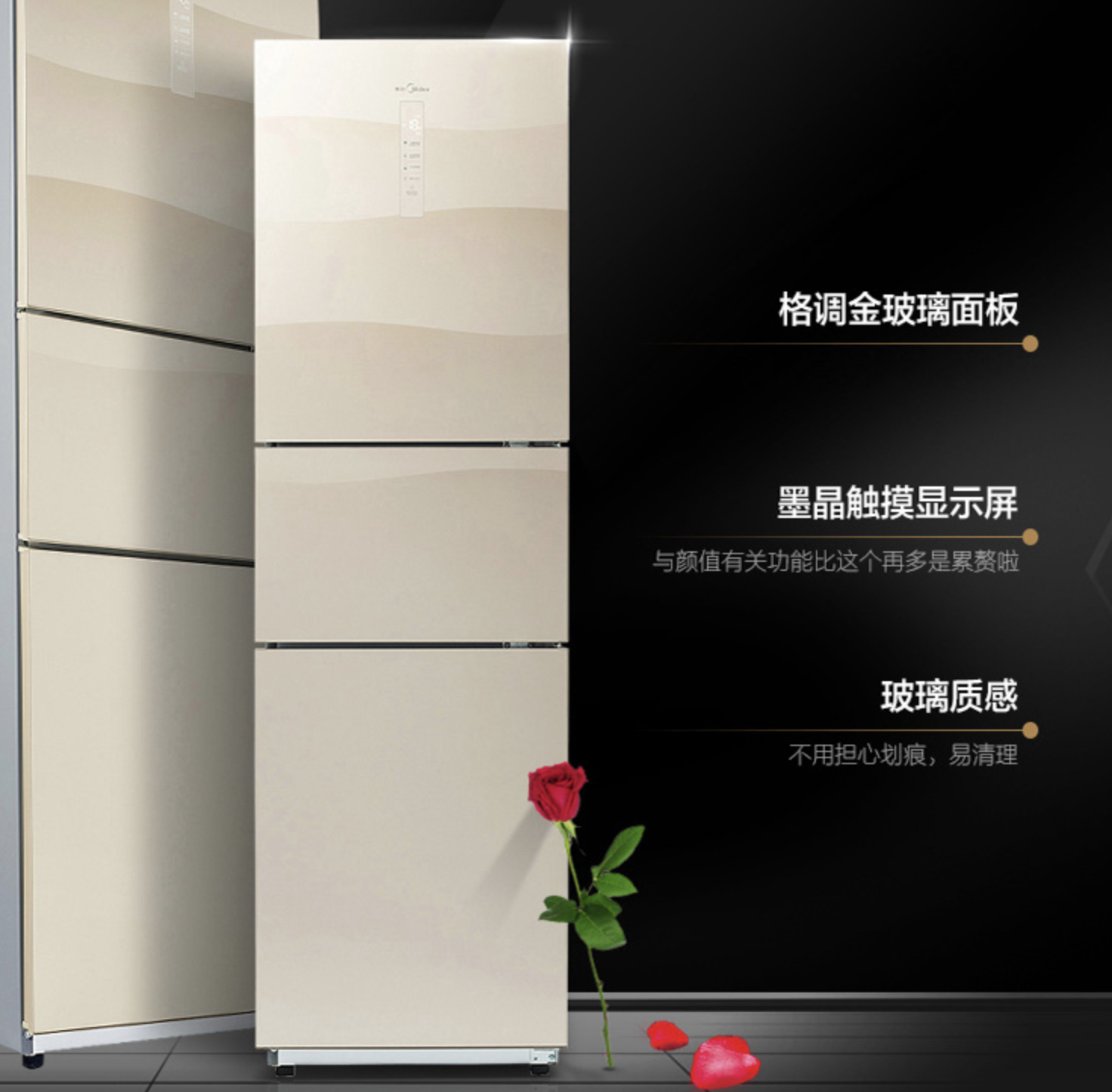 美的這款BCD-239WTGM三開(kāi)門(mén)冰箱,產(chǎn)品采用金色玻璃面板與墨晶顯示屏,杜絕劃痕更有質(zhì)感,寬門(mén)設(shè)計(jì)、 隱藏暗把手、三溫區(qū)黃金比例。這款產(chǎn)品三溫區(qū)可單獨(dú)控溫,分為121升冷藏室、38升變溫室和80升冷凍室,讓儲(chǔ)鮮多樣化。此外,風(fēng)冷無(wú)霜減輕手動(dòng)除霜的負(fù)擔(dān),保持食物原始口感。