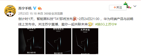 深圳新聞網(wǎng)2020年2月24日訊 2月24日21時(shí),華為新品“云發(fā)布會(huì)”將在蘇寧直播舉行,余承東等華為高層將亮相,為大家?guī)矶嗫钚缕?。從蘇寧手機(jī)官方微博發(fā)布內(nèi)容可以看到,此次華為新品發(fā)布會(huì)將推出全新的折疊屏手機(jī) Mate Xs以及新一代平板和筆記本電腦。