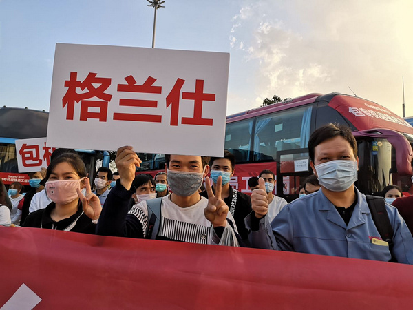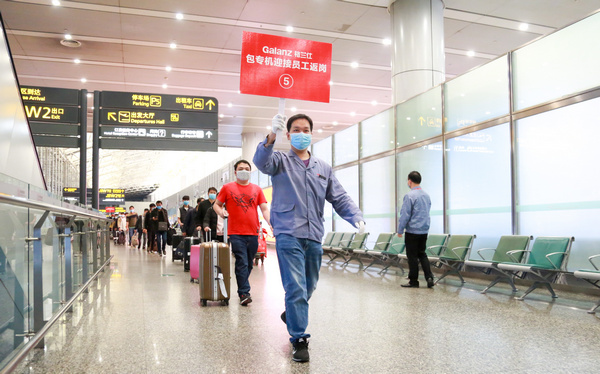 見(jiàn)圳客戶端·深圳新聞網(wǎng)2020年2月26日訊 2月25日下午,格蘭仕第二班“復(fù)工專機(jī)”在廣州白云國(guó)際機(jī)場(chǎng)平穩(wěn)降落,一百三十多名來(lái)自廣西各地的格蘭仕員工下了飛機(jī)第一件事,就是換上工作服,然后再搭乘企業(yè)安排的免費(fèi)專車,回到了格蘭仕順德總部。據(jù)了解,2月21日,首趟“格蘭仕復(fù)工專機(jī)”已經(jīng)接回了一百三十多名生產(chǎn)技術(shù)人員。