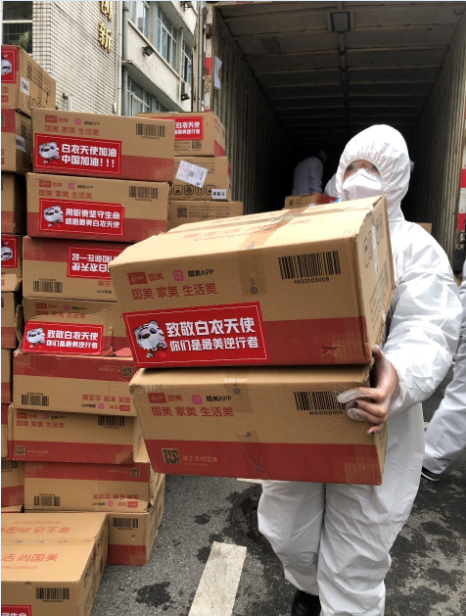 武昌醫(yī)院捐贈物資接收負(fù)責(zé)人在接受央視新聞記者現(xiàn)場采訪時(shí)表示,醫(yī)護(hù)人員穿上防護(hù)服會大量流汗,沒有胃口,方便食品可以改善食欲,而且更主要的是快,節(jié)約時(shí)間,幫助我們與時(shí)間賽跑,感謝國美等愛心企業(yè)的援助,他們默默無聞地提供了充足的物資和優(yōu)質(zhì)的服務(wù),幫助我們與新冠病毒抗擊,打贏這場戰(zhàn)役。