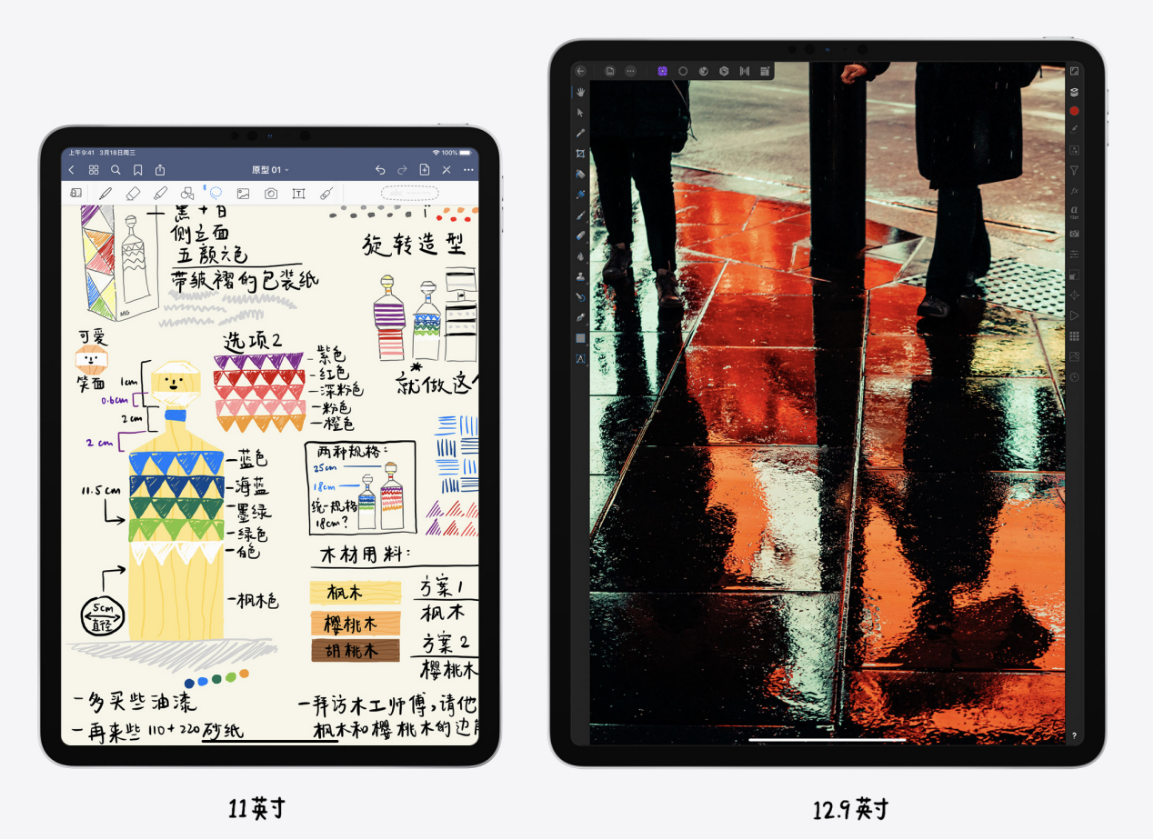 攝像頭一直不是iPad的強項,而全新的iPad Pro由兩枚鏡頭組成,一枚是廣角的標準鏡頭,1200萬像素、f/1.8的最大光圈,另一枚是超廣角鏡頭,1000萬的像素、f/2.4的最大光圈,兩枚鏡頭都支持4K@60fps的視頻拍攝,可以說是全面加強。