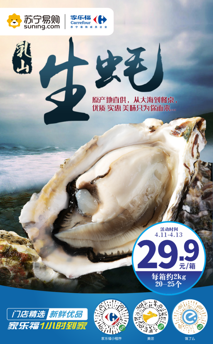4月11日至13日,家樂福限時(shí)秒殺價(jià)!買它!省了跑去乳山的車費(fèi),在家就能吃到新鮮乳山生蠔。