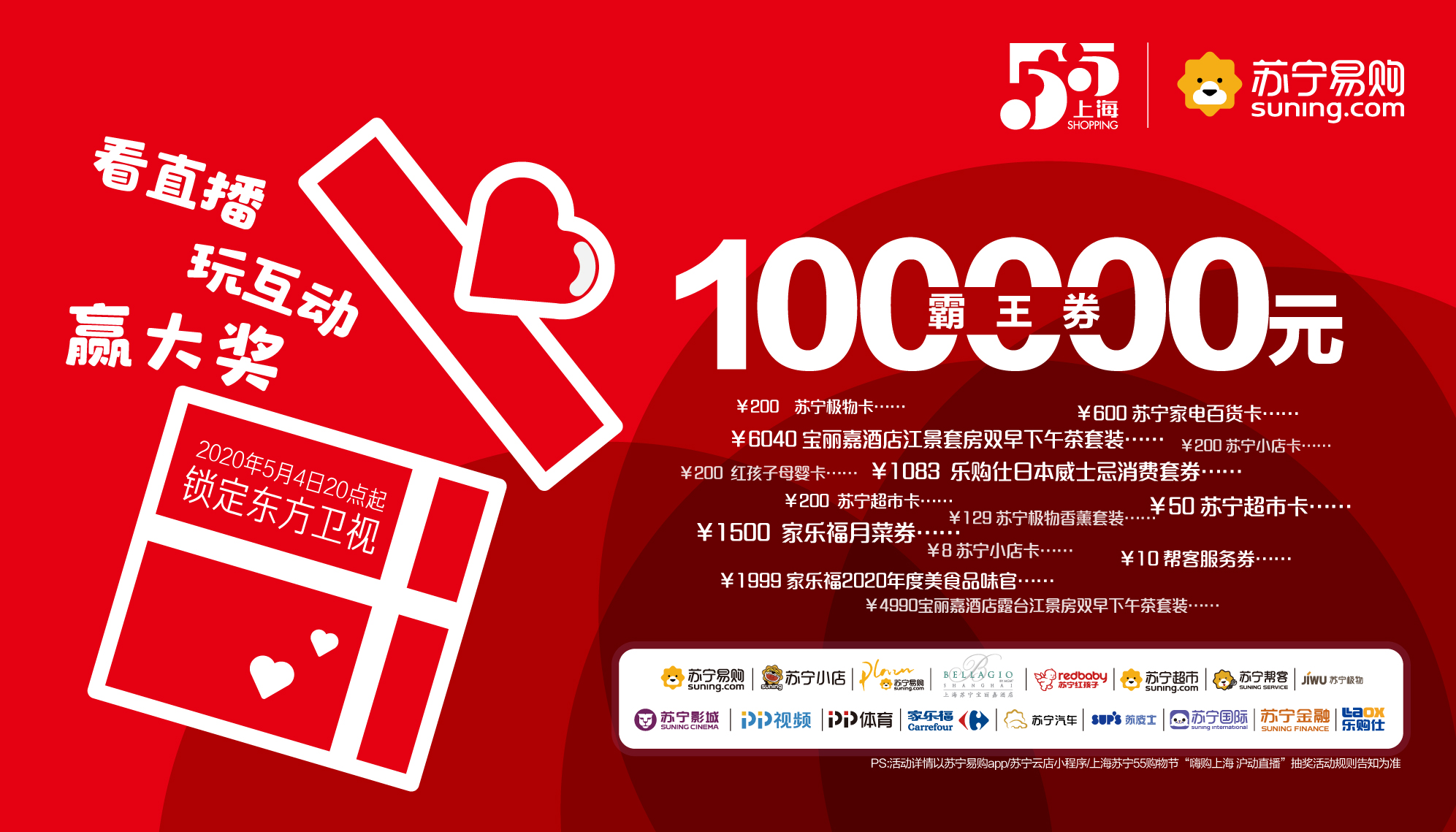 5月4日晚,東方衛(wèi)視將面向全球,舉辦“2020五五購物節(jié)”全球大直播。蘇寧易購作為此次“五五購物節(jié)”的主力企業(yè),屆時,將邀請眾多嘉賓一同前往直播間,分享蘇寧“五五購物節(jié)”的必囤清單。