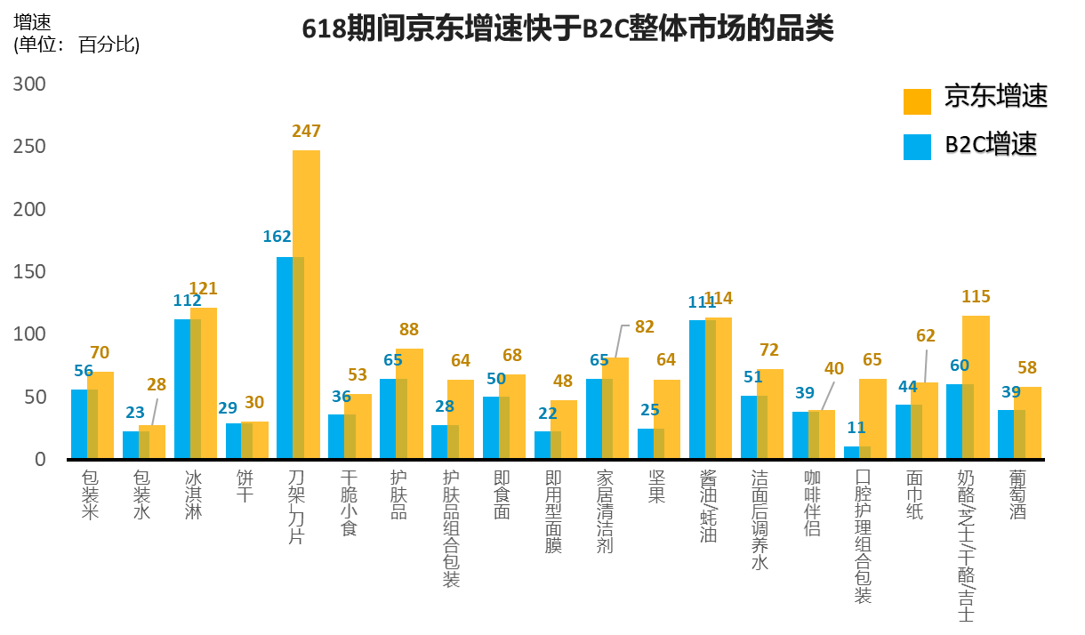 尼爾森618期間監(jiān)測的快消品類數(shù)據(jù)發(fā)現(xiàn),京東增速超過市場整體增速,從細分品類分析,618期間以食品為代表的大量民生品類在京東增速明顯超越大盤,充分展示了消費者對于京東平臺的信賴。京東大數(shù)據(jù)則顯示在2020年上半年已經(jīng)有超過10000個品牌在京東超市實現(xiàn)成交額同比增長100%,7000個品牌實現(xiàn)成交額同比增長200%,5000個品牌實現(xiàn)成交額同比增長300%,有200個品牌實現(xiàn)成交額超億元,超20個品牌實現(xiàn)成交額超10億。
