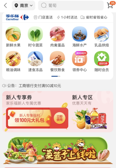 自8月8日起,消費(fèi)者通過蘇寧易購(gòu) APP、家樂福微信小程序等平臺(tái),可以一鍵購(gòu)買米面糧油、乳品烘焙、水產(chǎn)肉類、蔬菜水果等食物,SKU超過700個(gè)。很快,菜籃子也將在蘇寧小店APP上線。門店三公里范圍內(nèi)的訂單,最快25分鐘便可送到家。目前,菜籃子已經(jīng)覆蓋了51座城市的215家家樂福門店。