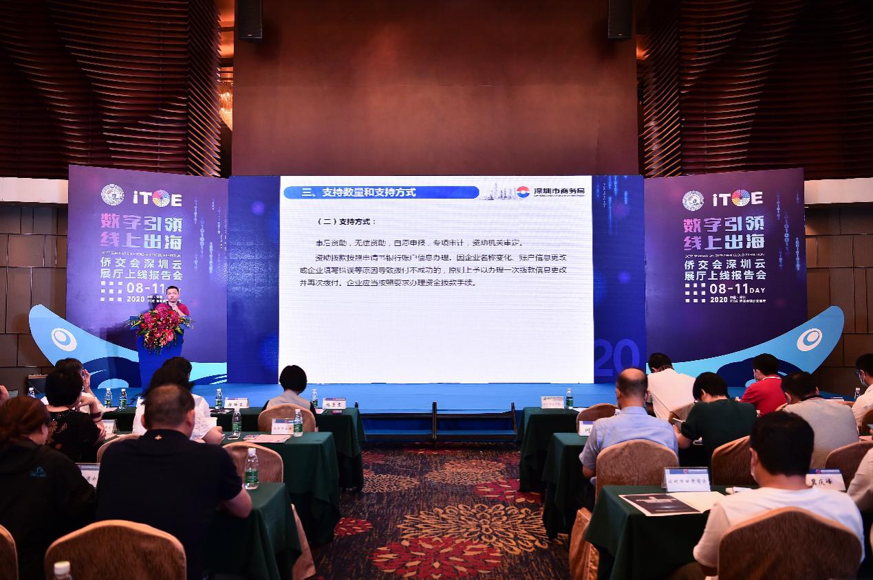 見圳客戶端·深圳新聞網(wǎng)2020年8月12日訊(記者 張俊達(dá))昨天,“數(shù)字引領(lǐng)?線上出?!眱S交會(huì)深圳云展廳上線報(bào)告會(huì)在深圳綠景酒店三樓會(huì)議廳成功召開。以"數(shù)字引領(lǐng)?線上出海,提升企業(yè)國(guó)際競(jìng)爭(zhēng)力"為主題,本次報(bào)告會(huì)重點(diǎn)展示“ITOE僑交會(huì)深圳云展廳”創(chuàng)新會(huì)展模式、解讀疫情之下外貿(mào)中小企業(yè)如何通過數(shù)字化轉(zhuǎn)型,并帶來2020年度最新中央外經(jīng)貿(mào)發(fā)展專項(xiàng)資金政策宣講。深圳多個(gè)商會(huì)、行業(yè)協(xié)會(huì),以及僑企、港企、深圳外向型企業(yè)、展覽公司近200名代表參加報(bào)告會(huì)。