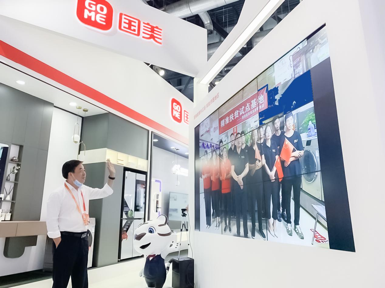 下午,國(guó)美零售總裁王俊洲參觀國(guó)美展區(qū),通過(guò)大屏現(xiàn)場(chǎng)連線了河南省信陽(yáng)市淮濱縣國(guó)美新零售店,并詢問(wèn)了門(mén)店的經(jīng)營(yíng)狀況。