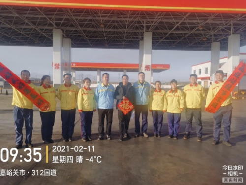 甘肅嘉峪關(guān),加油員們收到能鏈送來(lái)的保溫杯和“?!弊?/span>
