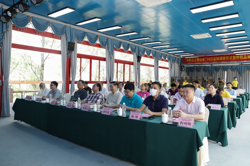 見圳客戶端·深圳新聞網(wǎng)2021年5月18日訊(記者 常軍平)“觀音山上觀山水”70萬(wàn)征聯(lián)活動(dòng)終有結(jié)果,評(píng)選出15句優(yōu)秀下聯(lián),最佳下聯(lián)空缺,并于5月17日在東莞觀音山舉行了頒獎(jiǎng)儀式及妙聯(lián)品鑒座談會(huì)?;顒?dòng)現(xiàn)場(chǎng),楹聯(lián)家們雅聚一堂,共同見證了本次征聯(lián)活動(dòng)優(yōu)秀獎(jiǎng)的頒出。以楹聯(lián)為媒,進(jìn)行交流互動(dòng)?;顒?dòng)期間,組委會(huì)代表東莞觀音山將結(jié)余款項(xiàng)67萬(wàn)元悉數(shù)捐給東莞樟木頭鎮(zhèn)慈善會(huì)。鑒于觀音山在推動(dòng)楹聯(lián)文化的傳承發(fā)展做出的突出貢獻(xiàn),被中國(guó)楹聯(lián)學(xué)會(huì)授予“中國(guó)楹聯(lián)文化名山”稱號(hào)。