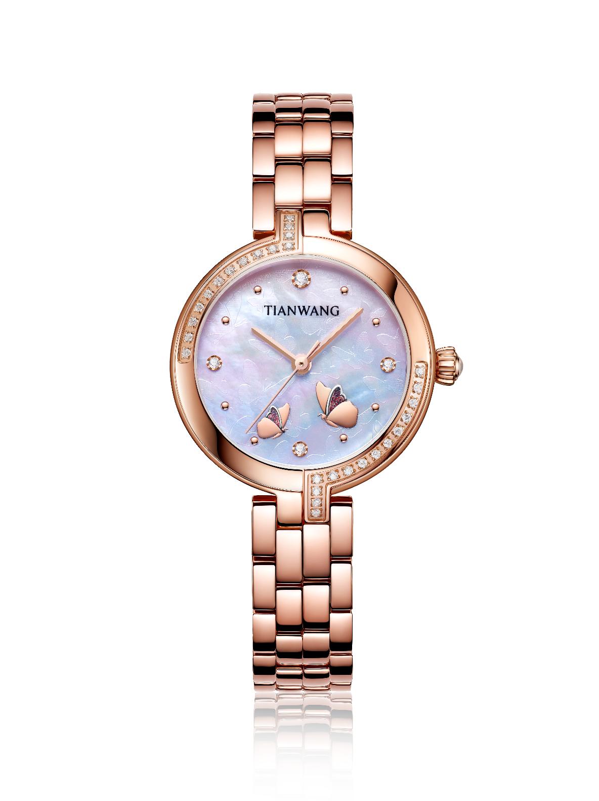 這次合作的腕表,沿襲了天王表的精品品質(zhì)和設(shè)計(jì)美學(xué),有點(diǎn)“小確幸”的風(fēng)格,整體很秀氣但是細(xì)節(jié)都誠(chéng)意滿滿。表是蝴蝶的天空,指針是蝴蝶的舞步。表盤采用蝴蝶壓印貝母,在藍(lán)寶石玻璃表鏡下,兩只立體蝴蝶翩然起舞,人如蝴蝶,蝴蝶像人,都迷戀這花花世界,想要縱情暢游其中。腕表刻度和表圈由璀璨皓石點(diǎn)綴,3點(diǎn)、6點(diǎn)、9點(diǎn)、12點(diǎn)使用較大皓石,使得整個(gè)表盤錯(cuò)落有致,富有層次感。搭配夢(mèng)幻南瓜把的,極具浪漫色彩。玫瑰金色不銹鋼表殼,給人以優(yōu)雅炫目之感,質(zhì)感鋼帶,光澤度明亮,搭配不銹鋼蝴蝶扣,錦上添花,佩戴效果自然舒適。