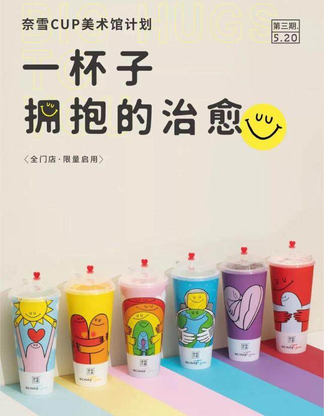 沒有財大氣粗的“品牌集郵”,也沒有投機(jī)取巧的抖機(jī)靈,奈雪似乎一直都深諳情感營銷的法門,過往也不乏優(yōu)質(zhì)案例。筆者印象最深的是“CUP美術(shù)館計劃”中的“瑞獸杯”和“抱抱杯”。前者是在2020與2021新舊年相交之際推出的,以茶飲杯為載體推出六款意頭極好的瑞獸,寓意“瑞獸相伴時來運轉(zhuǎn)”,與消費者新年新氣象的希冀不謀而合。