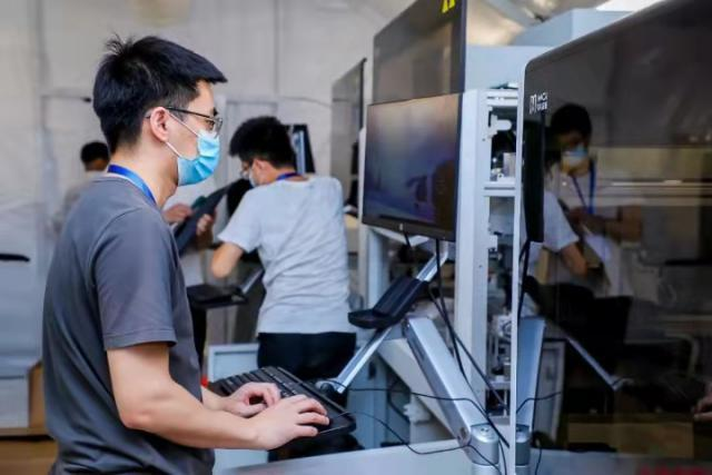 目前,在華大智造自動化設(shè)備的支持下,該實驗室可實現(xiàn)日檢測通量單管3萬人份,若采用"5混1"的樣本檢測模式,每日可完成15萬人份的檢測通量。此外,該實驗室還可以根據(jù)實際檢測情況,將日檢測通量單管擴展至6萬人份,若采用"5混1"的樣本檢測模式,每日最高可完成30萬人份的日檢測通量。
