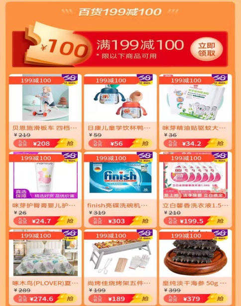 進(jìn)入“真快樂”APP自營百貨618大促“滿199減100”專區(qū),食品酒水、家居日用、美妝個護(hù)、母嬰玩具四大品類多款商品超級劃算,多維度滿足大家的需求。