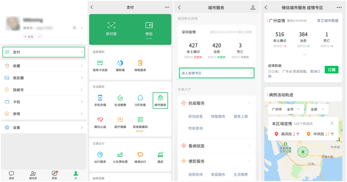 讀特客戶端·深圳新聞網(wǎng)2021年6月16日訊 (記者 田志強)端午期間,為減少疫情傳播風(fēng)險,廣東市民紛紛響應(yīng)號召實行就地過節(jié),落實非必要不出省的相關(guān)要求。為進一步助力廣東及全國人民抗疫,為市民提供準確疫情資訊及抗疫服務(wù),近日,微信更新城市服務(wù)疫情專區(qū),支持查看疫情數(shù)據(jù)、病例活動軌跡、疫情資訊以及接入抗疫服務(wù)。全國用戶打開“我-支付-城市服務(wù)-疫情專區(qū)”,即可快速觸達各類疫情相關(guān)服務(wù)。