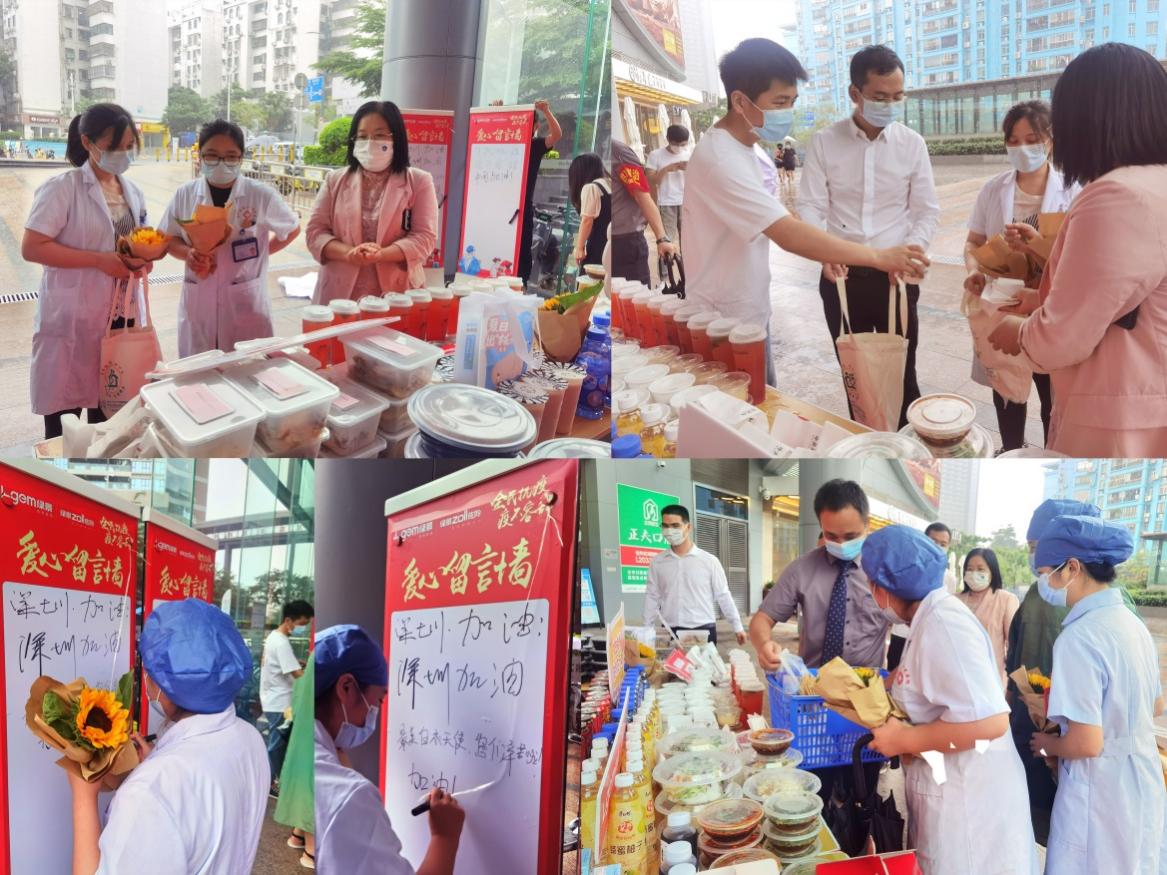 下梅林社區(qū)健康服務(wù)中心的護(hù)士小姐姐們,也在中午換崗的間隙,來到了活動(dòng)現(xiàn)場挑選美食。護(hù)士小姐姐們非常高興地表示,在暴雨天不用等外賣,就可以享受暖心的美味午餐,可以留出更多的時(shí)間,回到崗位工作,繼續(xù)“戰(zhàn)疫”!其中還有一位可愛的護(hù)士小姐姐為給自己加油打氣,在愛心留言墻上,寫下了“加油!我們是最棒的!”