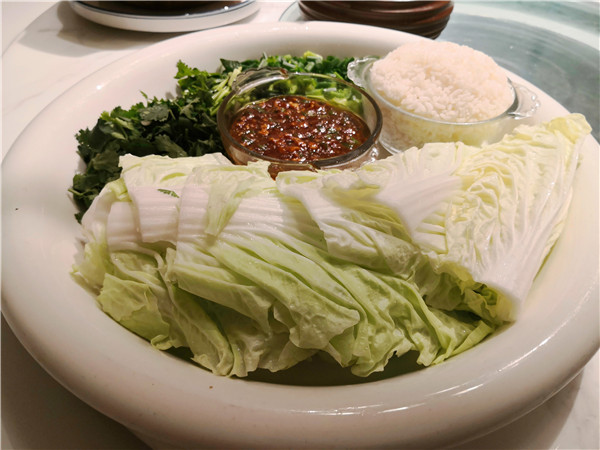尤其扎眼的,正對大門的明廚亮灶上的幾塊牌匾,一下子就勾起人的食欲:老式熏豬手、手工燒老雞、烏蘇里江鰉魚、興凱湖大白魚、查干湖胖頭魚、火夫灶羊腿。這些都是地道的東北味?。?jù)介紹,老板湯長明是黑龍江“龍菜”系傳承領軍人物,祖孫四代傳承東北菜廚藝,現(xiàn)在關東大院餐飲集團董事長。當然,許多大家耳熟能詳?shù)拇蟊姴艘矐斜M有,如:殺豬菜、小雞燉蘑菇、得莫利燉魚、大鵝燉寬粉、黑皮肘子、酸菜粉、地三鮮、東北鹵水點豆腐、金湯遼參、黃魚燒土豆、紅燒肉黃金勾......看得人口水直冒。加之,整個門店的布局也十分特別,一樓明廚亮灶之外,主要是大堂散座,周邊還有不少的書籍、酒架;二樓主要是包間,簡潔明亮??梢哉f,在此可以感受到一股濃濃的關東風情。