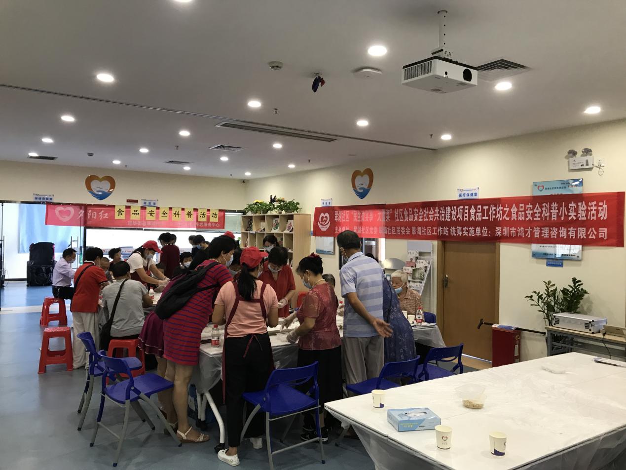 近日,由龍崗區(qū)社區(qū)“民生微實(shí)事·大盆菜”項(xiàng)目專項(xiàng)經(jīng)費(fèi)資助的食品安全科普小實(shí)驗(yàn)活動來到了翠湖社區(qū),30名轄區(qū)居民參加該活動。