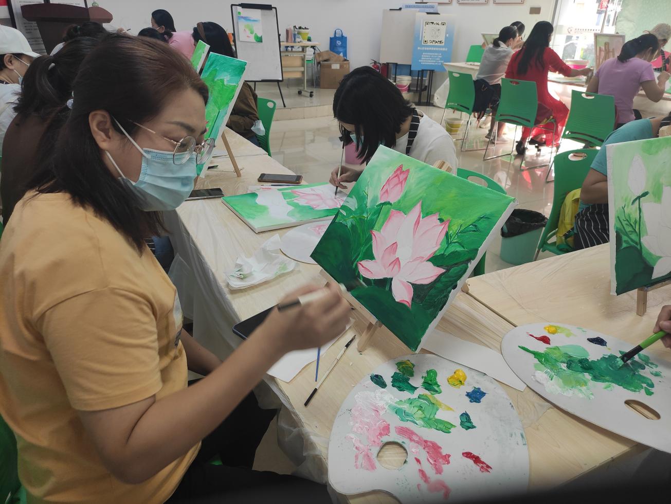 溫馨的環(huán)境,融洽的氣氛,專業(yè)的老師,友好的同伴,媽媽們度過了一個個美好的下午。盡管媽媽們都是零基礎(chǔ),但全情投入的專注,不僅釋放了壓力,更是打開了一扇通往油畫藝術(shù)的小窗。愛自己,愛生活,才能更好地愛家人,本次油畫班持續(xù)開展約兩個多月,媽媽們更好地享受屬于自己的油畫時間,學有所獲。