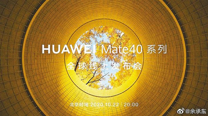 華為消費(fèi)者業(yè)務(wù)總裁余承東在10月10日宣布,華為將于北京時(shí)間10月22日20時(shí)舉辦全球線上發(fā)布會(huì),他稱,這將是“史上最強(qiáng)大的華為Mate”。