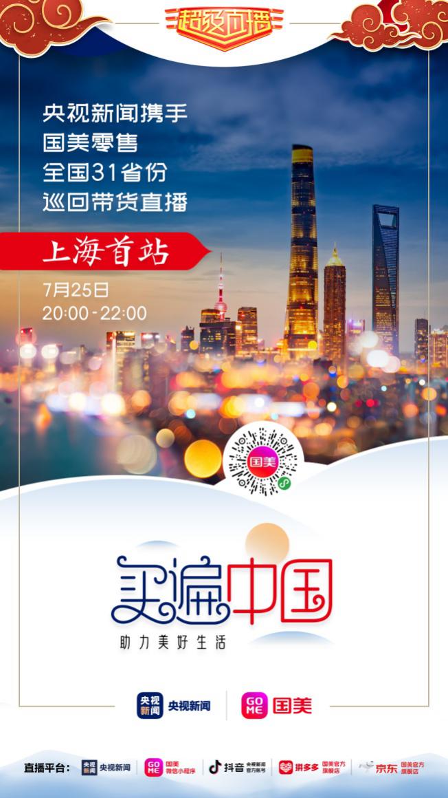 央視新聞與國美合作再升級,將聯(lián)合舉辦“買遍中國·助力美好生活——央視新聞 &國美零售全國31省份巡回帶貨直播”活動。