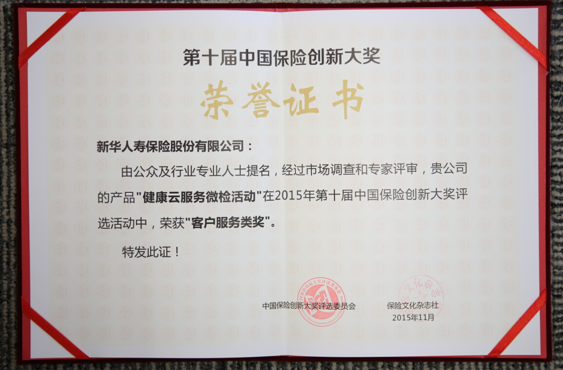 2015中國保險創(chuàng)新大獎--客戶服務(wù)類獎