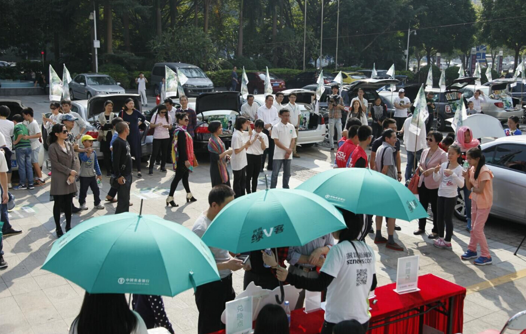 深圳市實(shí)驗(yàn)中學(xué)的車尾箱展位前圍滿了前來(lái)?yè)Q書的人