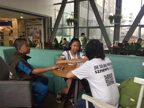6月1日,在智慧親子陪伴組委會(huì)主辦的“六一聯(lián)歡會(huì)”上,來(lái)自書香小學(xué)的黃思怡和陽(yáng)光小學(xué)的張家宇兩名深網(wǎng)小記者對(duì)七巧國(guó)教育科技有限公司常務(wù)副總經(jīng)理 王耀強(qiáng)、深圳獅子會(huì)會(huì)長(zhǎng) 施建永進(jìn)行了專訪。(曹園芳)