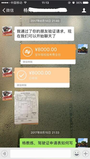 2017年8月,陳先生與寶華駕校教練員楊某銀簽《駕駛員培訓(xùn)合同》,并支付了全款培訓(xùn)費(fèi)用8000元(見(jiàn)微信截圖)。2018年1月,陳先生通過(guò)科目二考試后,與楊某預(yù)約科目三考試。楊某提出要再次收費(fèi)(詳見(jiàn)聊天記錄)。陳先生與楊某溝通無(wú)效后,向該教練掛靠的寶華駕校投訴維權(quán),寶華駕校反應(yīng)“其一,駕校不接收學(xué)員不與學(xué)員簽合同;其二,教練的投訴先調(diào)查了解”,后續(xù)再無(wú)反饋。