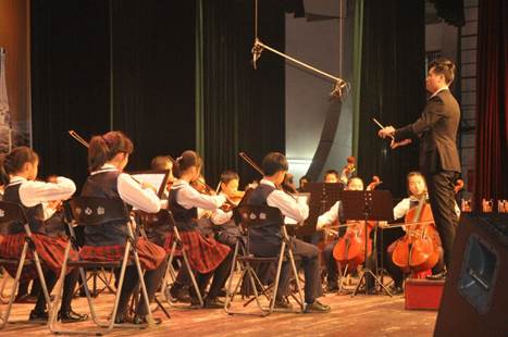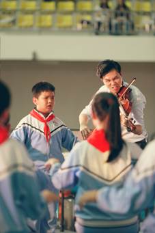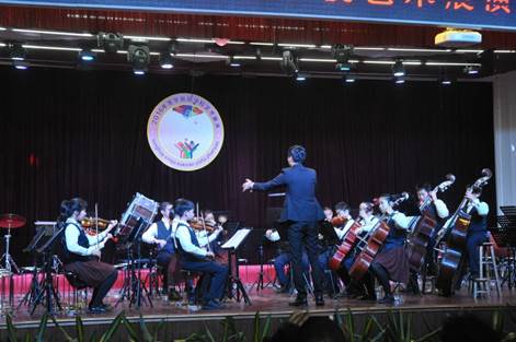 王翔云老師在龍華區(qū)學(xué)校藝術(shù)展演中指揮弦樂團(tuán)