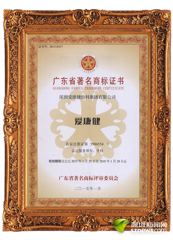 獲得廣東省著名商品評(píng)審委員會(huì)認(rèn)定的“廣東省唯一牙科著名商標(biāo)”。