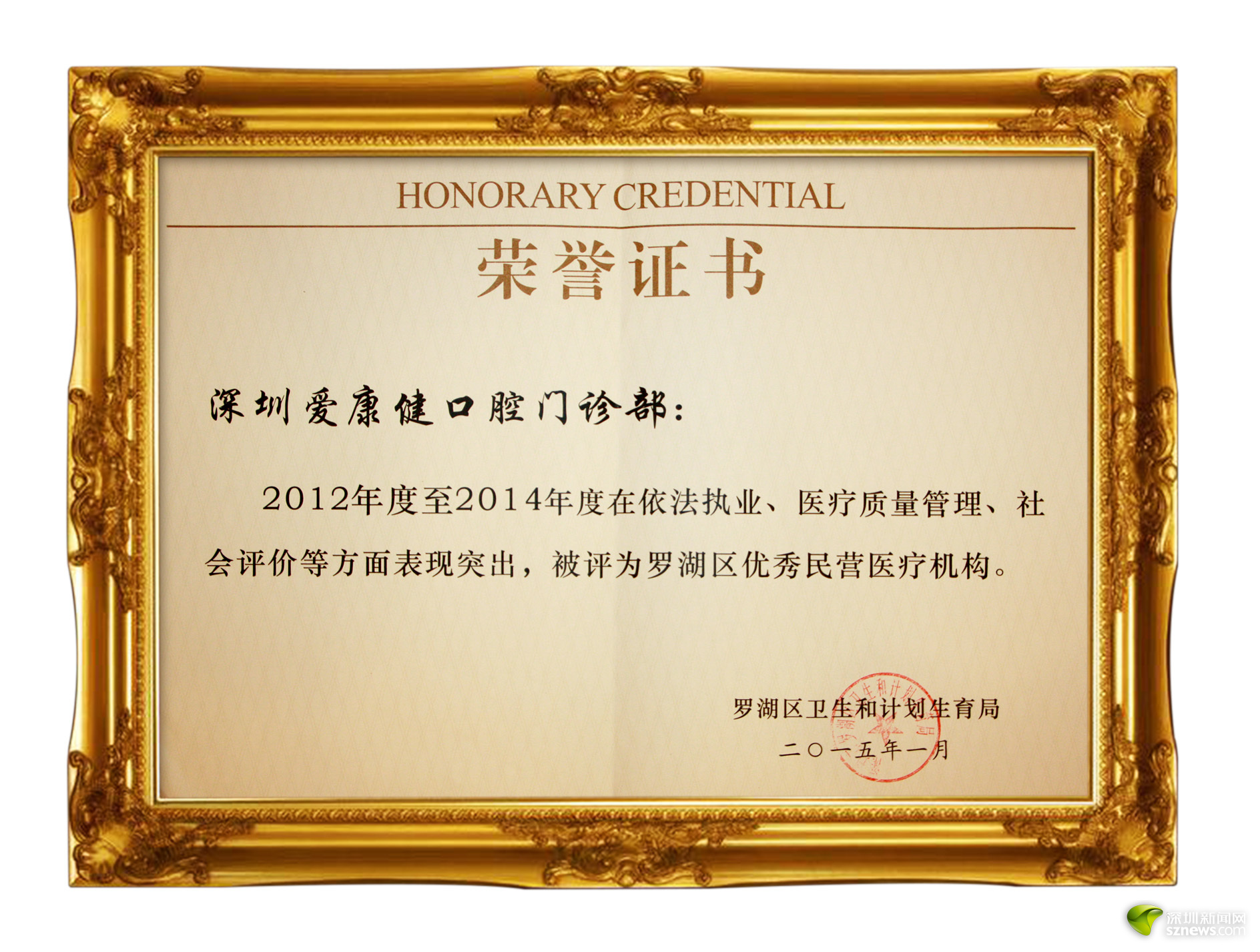 在羅湖區(qū)衛(wèi)生和人口計(jì)劃生育局民營(yíng)醫(yī)療機(jī)構(gòu)醫(yī)療服務(wù)整體管理與醫(yī)療質(zhì)量控制評(píng)估中,獲評(píng)“A級(jí)單位”。