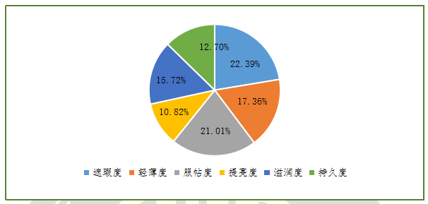 圖6.關(guān)注氣墊粉底使用性能指標的消費者人數(shù)占比