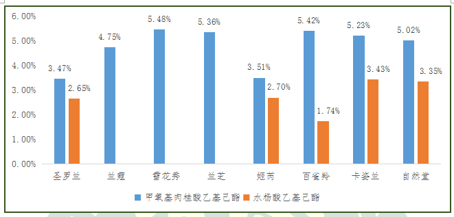 圖3.8款產(chǎn)品化學防曬劑檢出情況