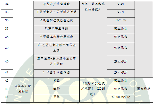 表4.15類化學防曬劑標準要求比對及評價結(jié)果