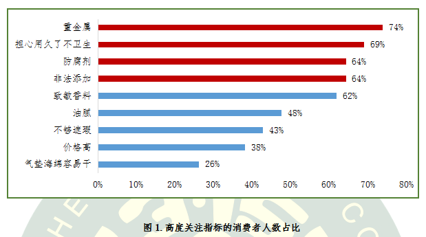 對于氣墊粉底這類兼具BB/CC霜和粉底功效的新型彩妝產(chǎn)品,消費者最擔心的問題是什么呢?項目調(diào)查數(shù)據(jù)顯示,關(guān)注氣墊粉底“重金屬”問題的消費者占比高達74%,“擔心氣墊粉底用久了不衛(wèi)生”的消費者占比為69%,還有64%的消費者關(guān)注“防腐劑”和“非法添加劑”問題。