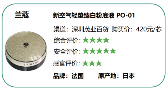(一)本次比較試驗從消費者角度出發(fā),參考國標、歐盟(包含德國)、美國以及日本等國家和地區(qū)的標準對氣墊粉底進行測評,旨在為消費者篩選出達到國際一流標準的高品質(zhì)產(chǎn)品。