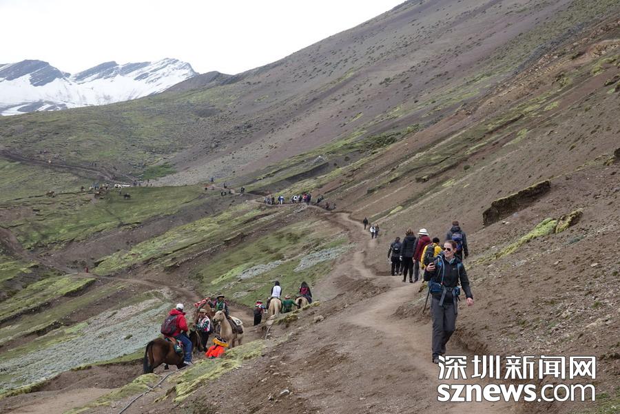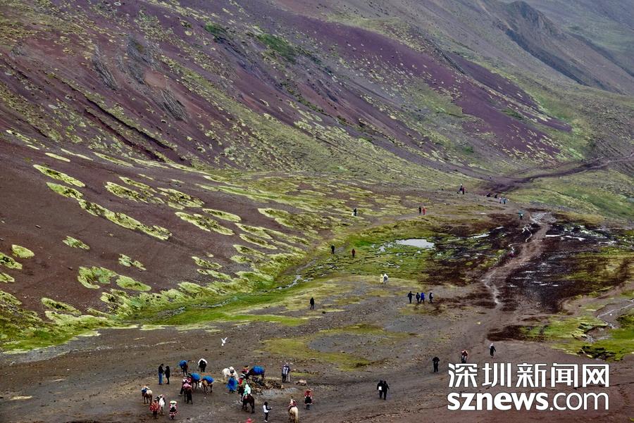 深圳新聞網(wǎng)訊 彩虹山被當?shù)厝朔Q為維昆尼卡。深藏于秘魯庫斯科古城附近的安第斯山脈之中,多年來它一直隱藏在冰雪之下,據(jù)說是因為溫室效應,雪線升高露出真容,才于2016年被發(fā)現(xiàn),并迅速成為世界知名景點。這里可以觀賞到的還有冰川、高山草甸、羊駝以及當?shù)厣贁?shù)民族的風情。李仁奇攝