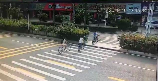 深圳一學生騎車通過斑馬線被撞。圖為監(jiān)控視頻所拍攝畫面。