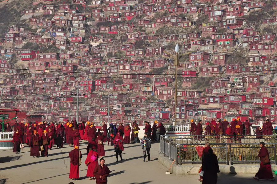 震撼!世界最大佛學(xué)院建在海拔4000米的山谷 密密麻麻的僧舍連綿數(shù)公里