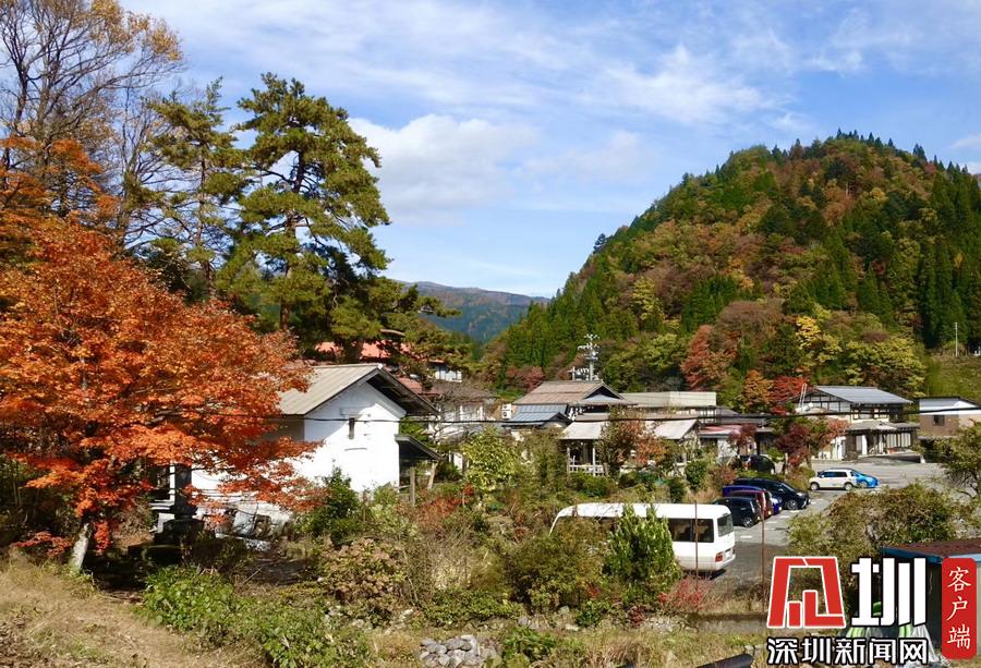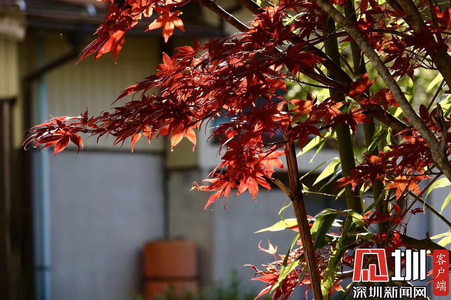 在明媚的陽(yáng)光下,日本風(fēng)格民居掩映在紅葉之中,房前屋后的小景也很漂亮。李仁奇攝