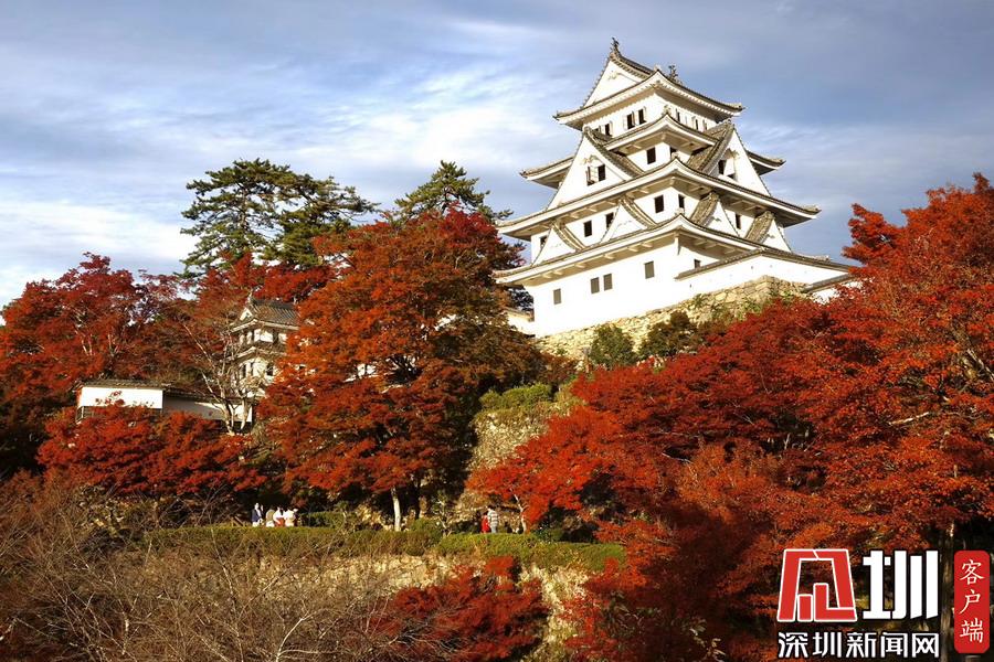 登上海拔354米的八幡山,木造古建筑天守閣下被染紅的楓樹(shù)和小城街市盡收眼底。李仁奇攝