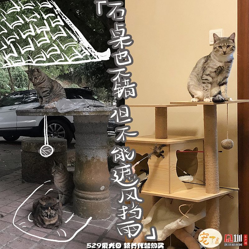 外面的世界再精彩,也比不過一個能遮風擋雨,沒有車流、毒藥威脅,三餐穩(wěn)定、四季如春的容身之處,更何況,這里還有比石桌更有趣的貓爬架和比落葉更好玩的小玩具?,F(xiàn)在“高高在上”“作威作福”的貓咪,也是花光了一生所有運氣,才能在無法獨自生存的小時候,遇見一個愿意照顧TA一生的“兩腳獸”。