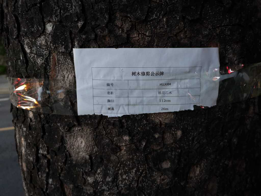 將要被修剪的行道樹上貼著的公示牌市民拍攝
