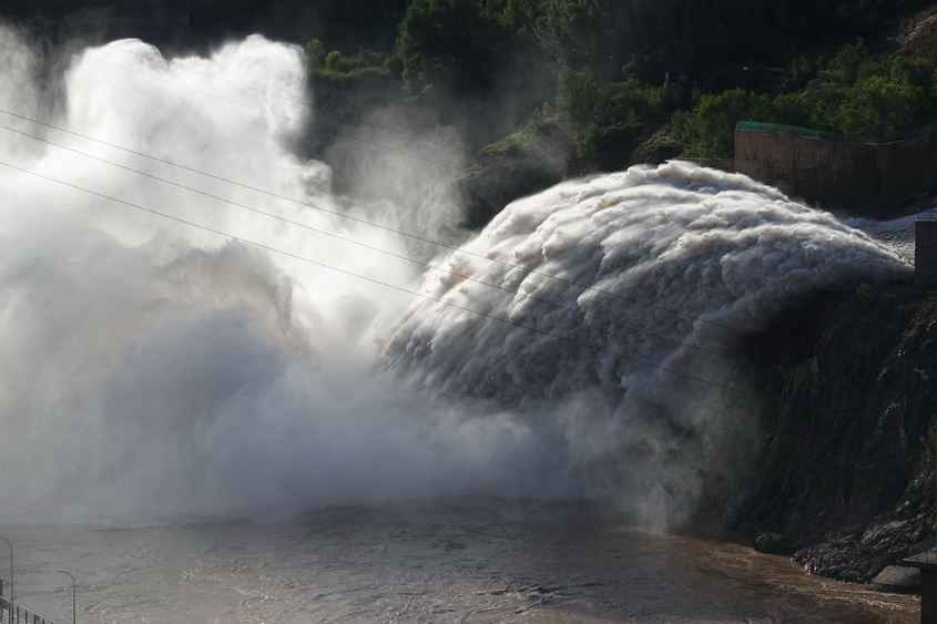 洮河黃河匯流處清濁分明的水面和電站排洪的壯觀景象具有獨特的觀賞價值。李仁奇攝