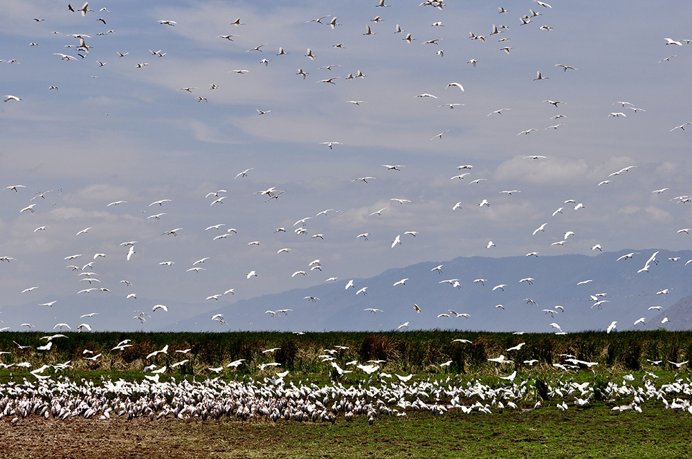 坦桑尼亞北部內陸湖。在阿魯沙西南96公里。由斷層陷落形成,南北長48公里,東西寬16公里,面積325平方公里。李仁奇 攝