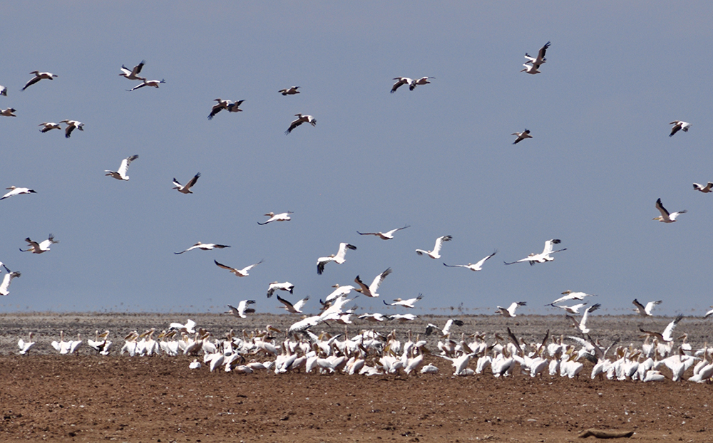 每年不同時期,紅鶴、鵜鶘、鸕鶿、火烈鳥等大型鳥類云集湖區(qū),綿延數(shù)公里,十分壯觀。李仁奇 攝